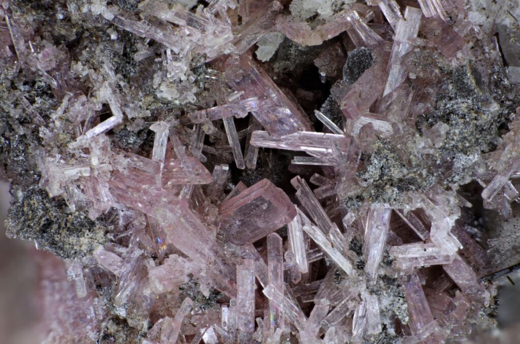 ncat ANK MSH107 Serandite, Poudrette quarry, Mont Saint-Hilaire, La Vallée-du-Richelieu RCM, Montérégie, Québec, Canada December 12, 2022 Pendleton Canada North and Central Americas Prismatic pale pink crystals. Ex Noel and Ann Kennon Collection. Ex Jean Pierre Beckerich. Width of view 11.5mm. Stack of 134 images. Click on the image below for a higher resolution version.