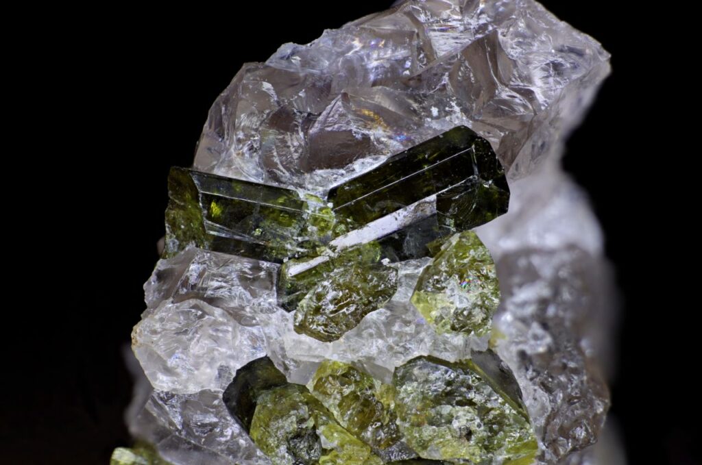 ncat AA2 Epidote, Quartz, Old Mount Riddock Homestead Mine, Mt Riddock Station, Harts Range, Central Desert Region, Northern Territory January 10, 2023 Pendleton Australasia Australia Northern Territory Prismatic green epidote on quartz. Ex John and Betty Weir. Width of view 11.5mm. Stack of 70 images. Click on the image below for a higher resolution version.