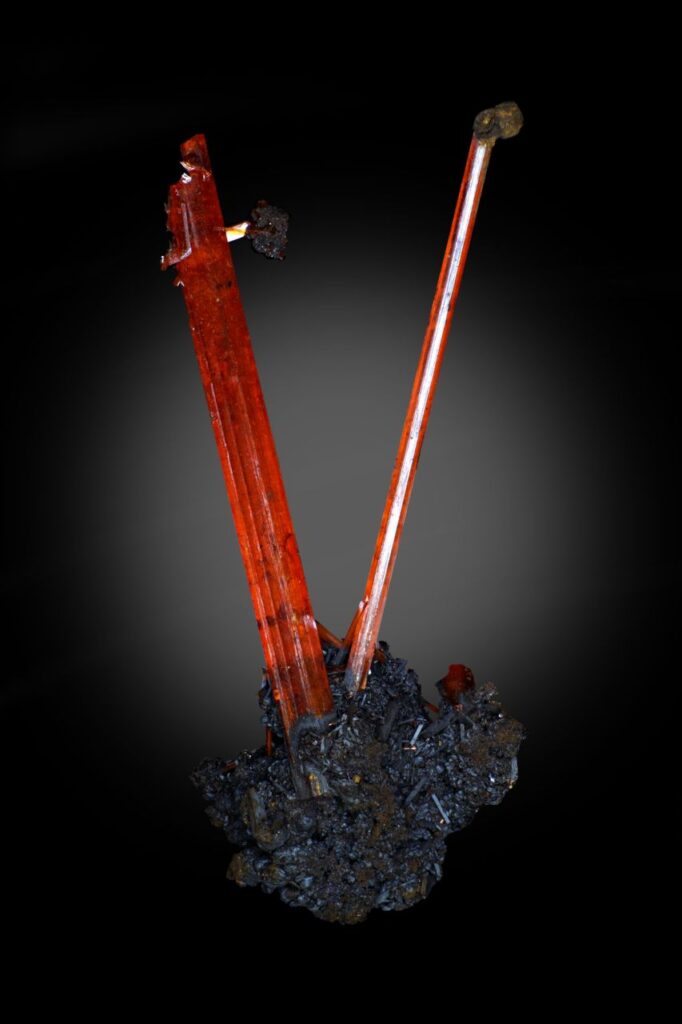 ncat Crocoite, Adelaide Mine, Dundas, Tasmania January 11, 2023 Pendleton Australasia Australia Tasmania 2022 production. Crystals 22mm long. Click on the image below for a higher resolution version.