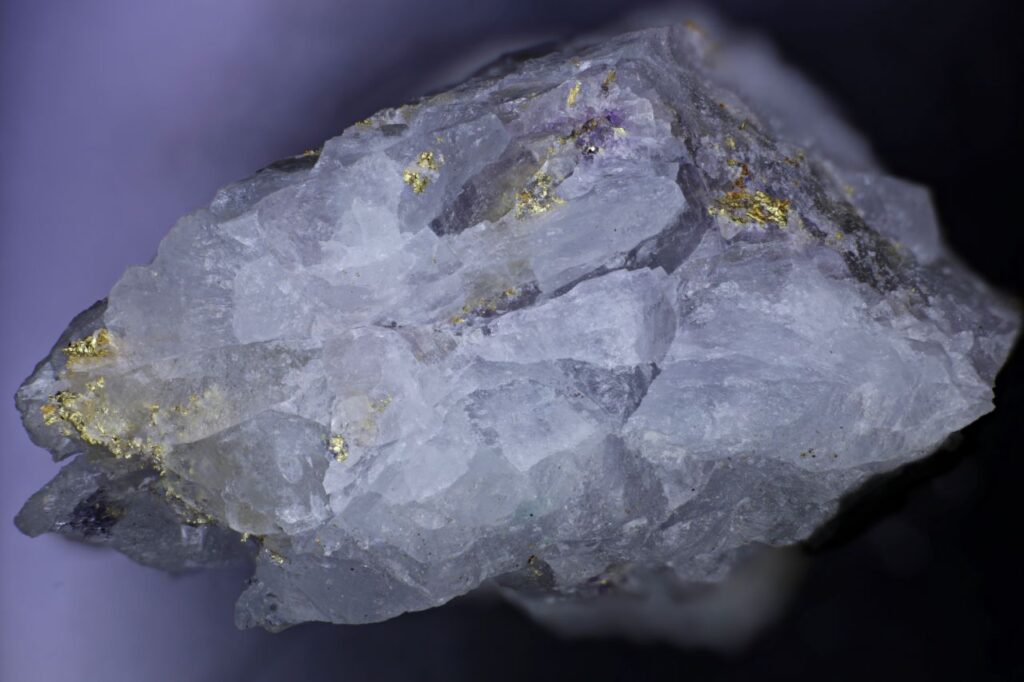 0073 Gold, Fluorite, Hercules Mine, Williamsford, Rosebery district, West Coast municipality, Tasmania May 16, 2023 Pendleton Australasia Australia Tasmania Hackly silver-rich gold in mostly grey fluorite with a hint of purple. Width of view 17.25mm. Stack of 100 images. Click on the image below for a higher resolution version.
