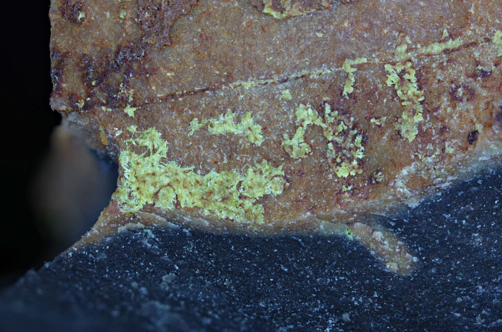 ncat MARXX Iriginite, Ben Lomond Mine, Charters Towers Region, Queensland August 10, 2024 Pendleton Australasia Australia Queensland Fibrous yellow sprays. Also present is a bright yellow fluorescent mineral, possibly autunite. Ex Frank Radke. Ex Sue Koepke collection. Width of view 6mm. Stack of 45 images. Click on the image below for a higher resolution version.