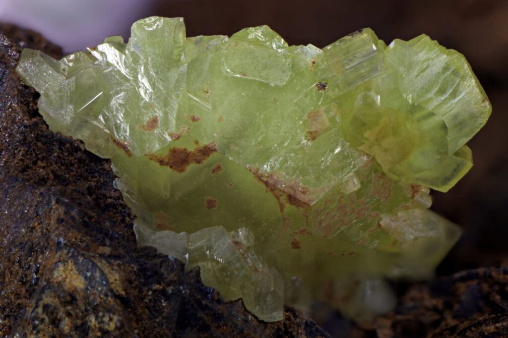 0427 Cerussite, Magnet Mine, Waratah, Tasmania January 26, 2022 Pendleton Australasia Australia Tasmania A cluster of yellow-green so-called “chrome” cerussite. Width of view 5mm. Stack of 45 images. Click on the image below for a higher resolution version.